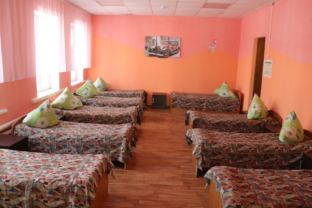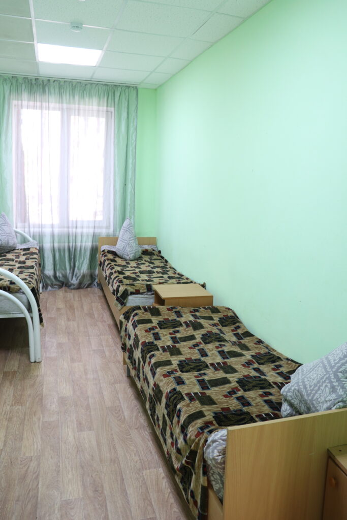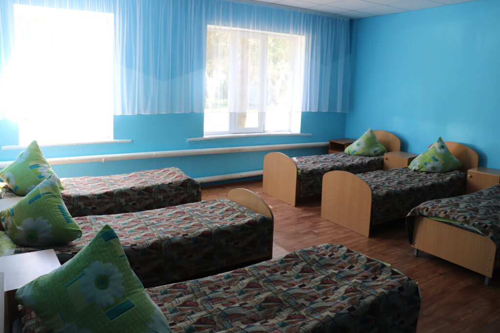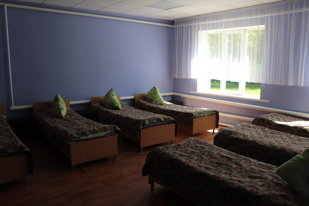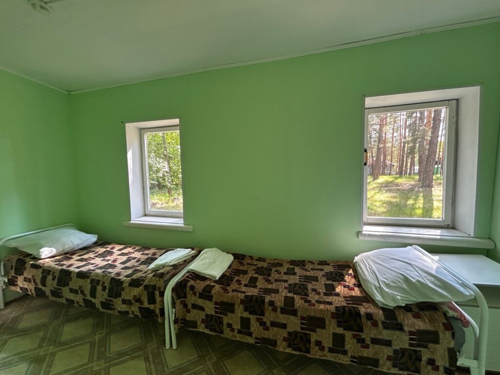 В первом корпусе находятся 4 спальных комнаты по 9 спальных мест. Оборудован санитарный блок: туалет и умывальник.